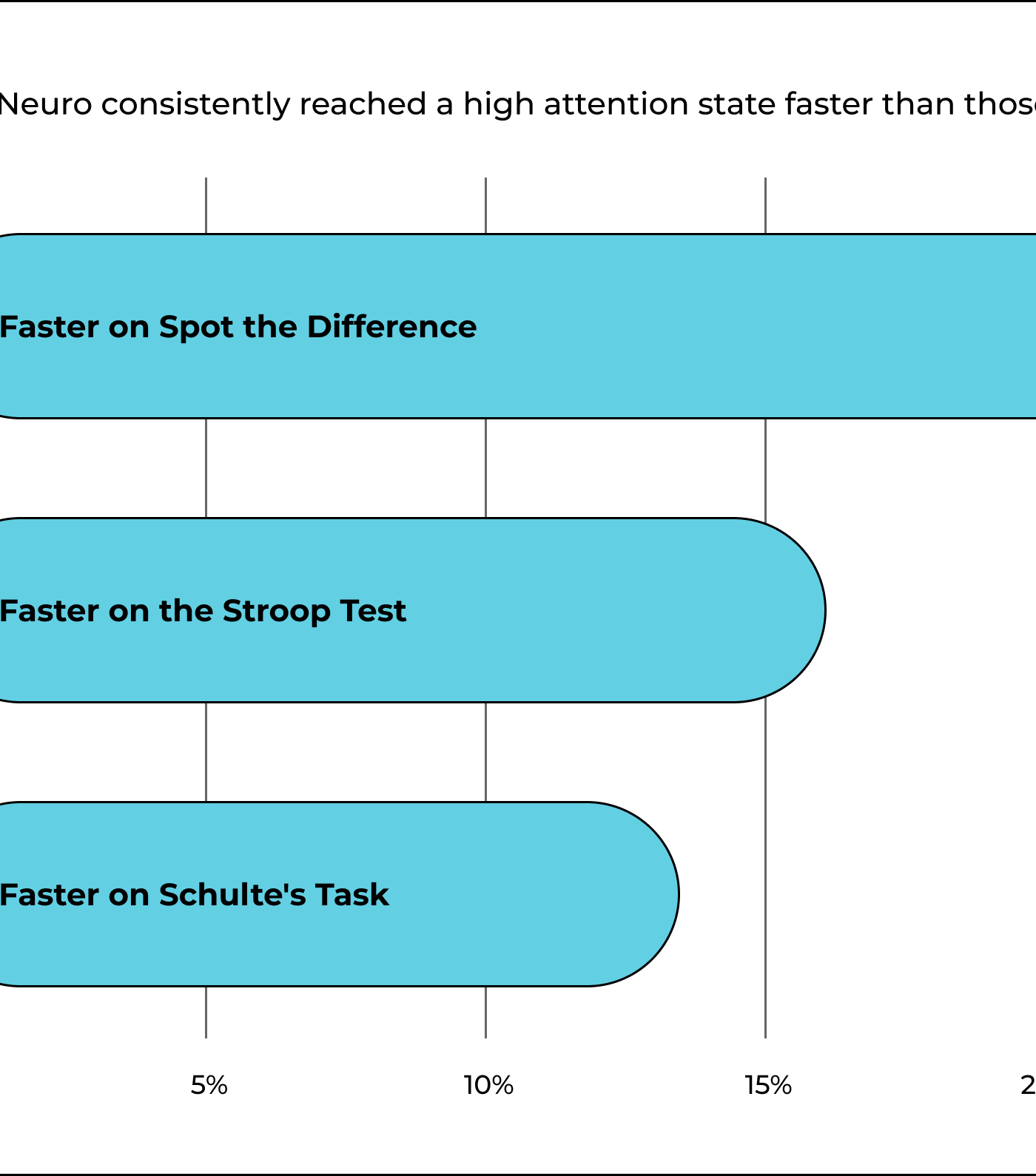 Results show that when the users consume the Neuro Mint, they are able to reach high levels of focus (as measured by the BrainCo focus algorithm) much faster than when they do not use any mint or when they consume a placebo mint.