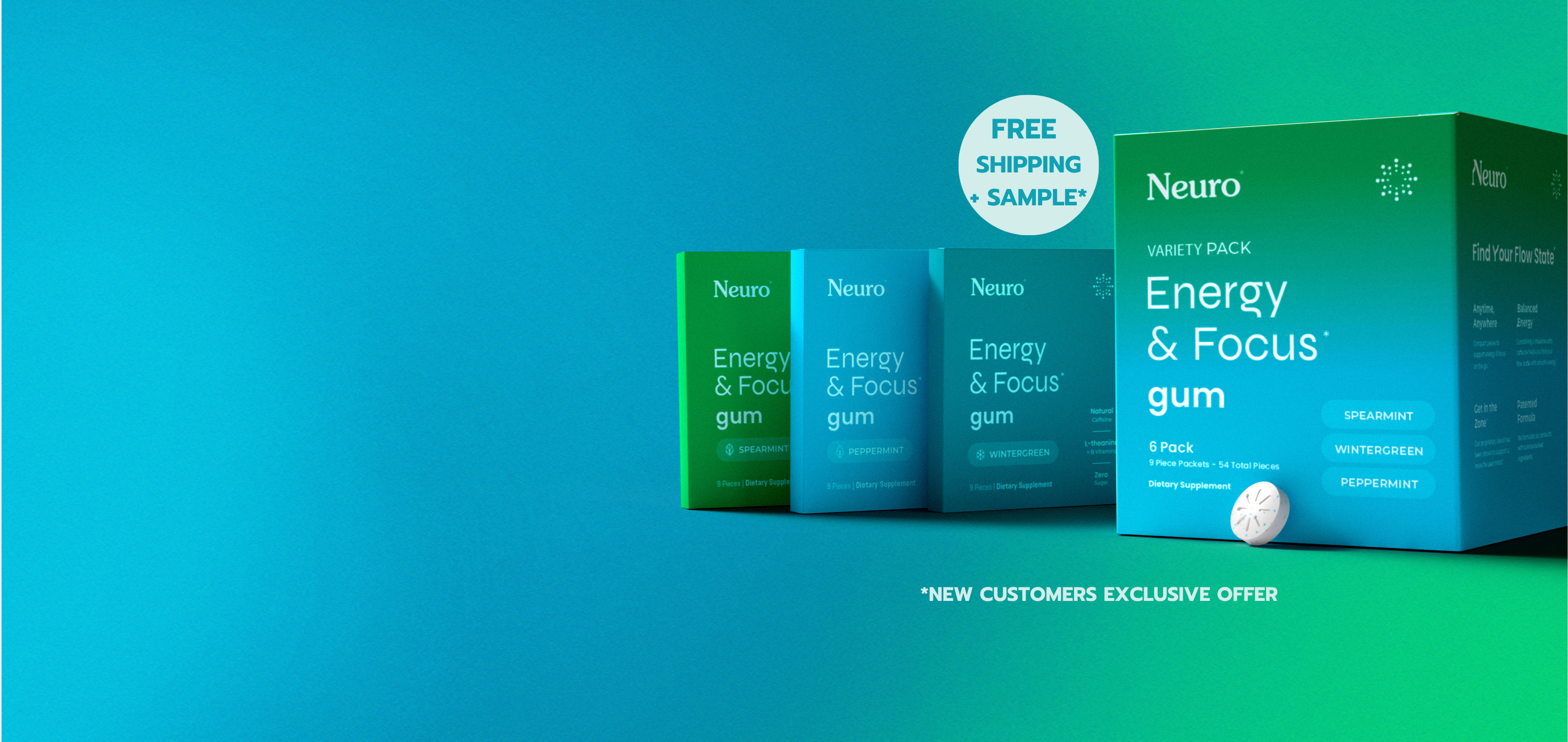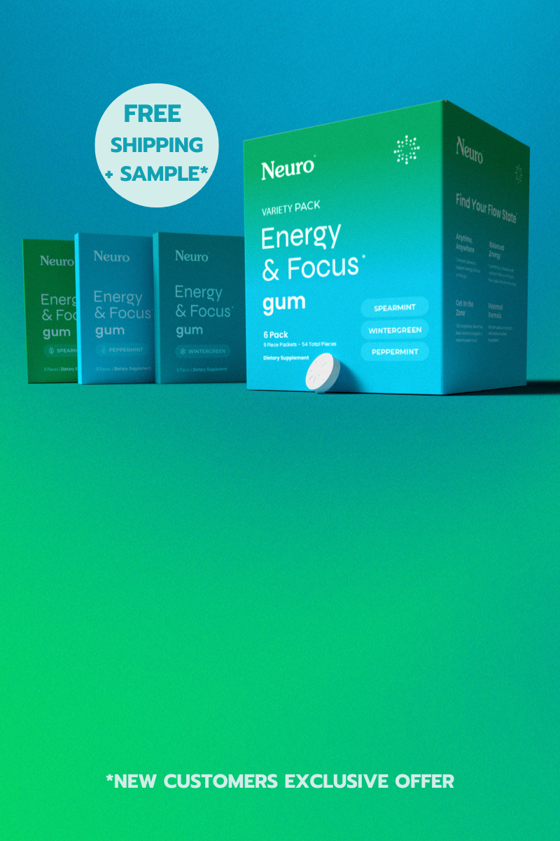 The Neuro Energy & Focus Variety Pack gives you three delicious flavors of our signature gum, each packed with natural caffeine, L-theanine, and essential B-vitamins. That’s 54 pieces of portable, science-backed performance, bundled together so you can power through your day without sugar, pills, or energy drinks.