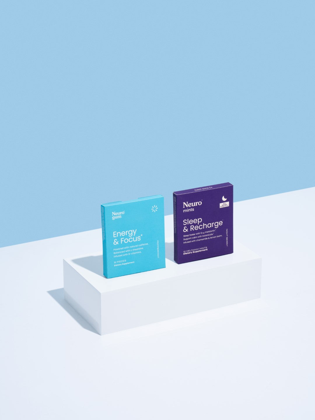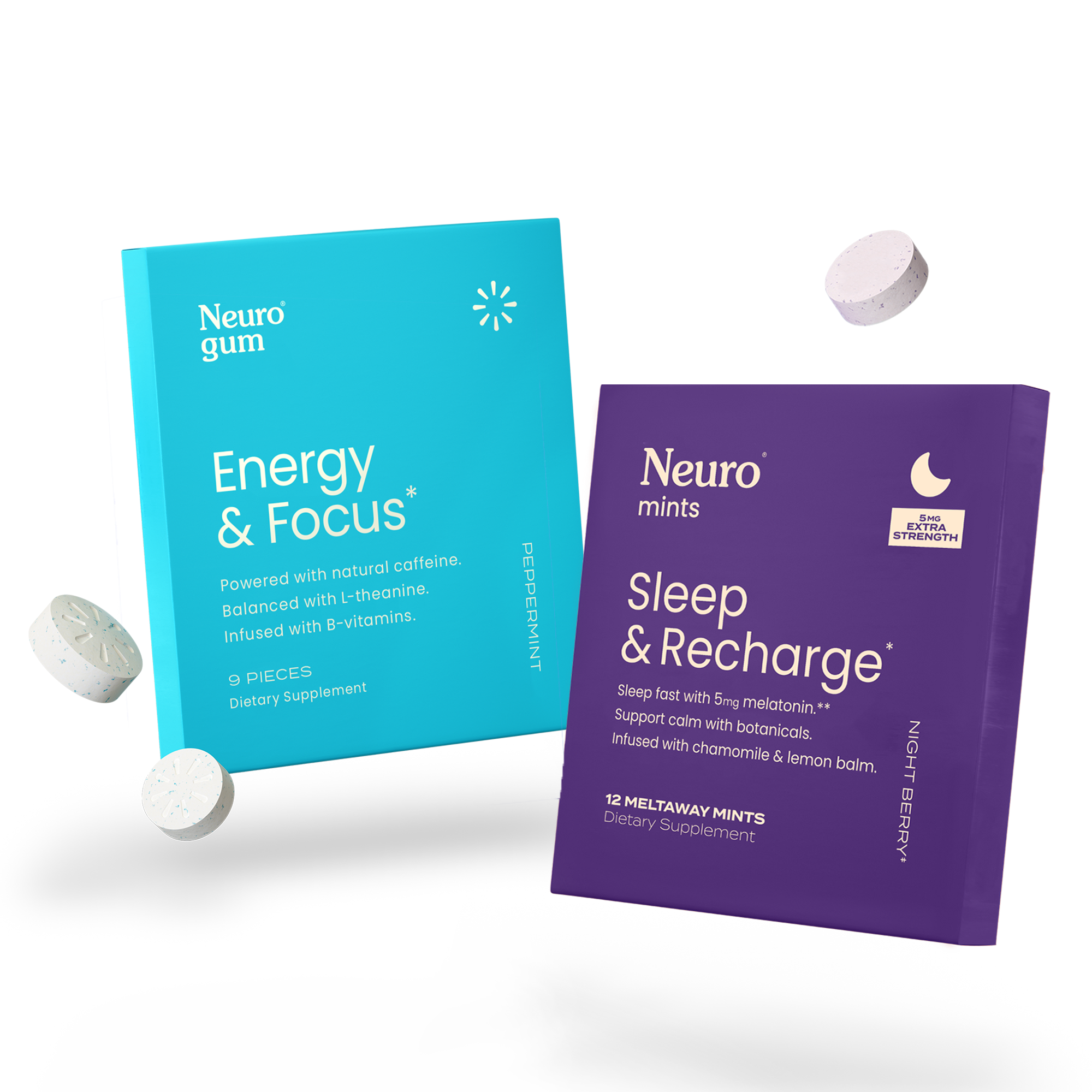 When it comes to taking on big goals, we need energy levels that match the mission. Neuro Energy and Focus Mints use a vegan, zero sugar, and aspartame-free nootropic blend of natural caffeine, L-theanine, and B-vitamins to give you the mental energy boost you need to tackle your day. When you pair it with Neuro Sleep & Recharge meltaway mints you will wake up feeling rested, recharged, and ready to take on the busy day ahead