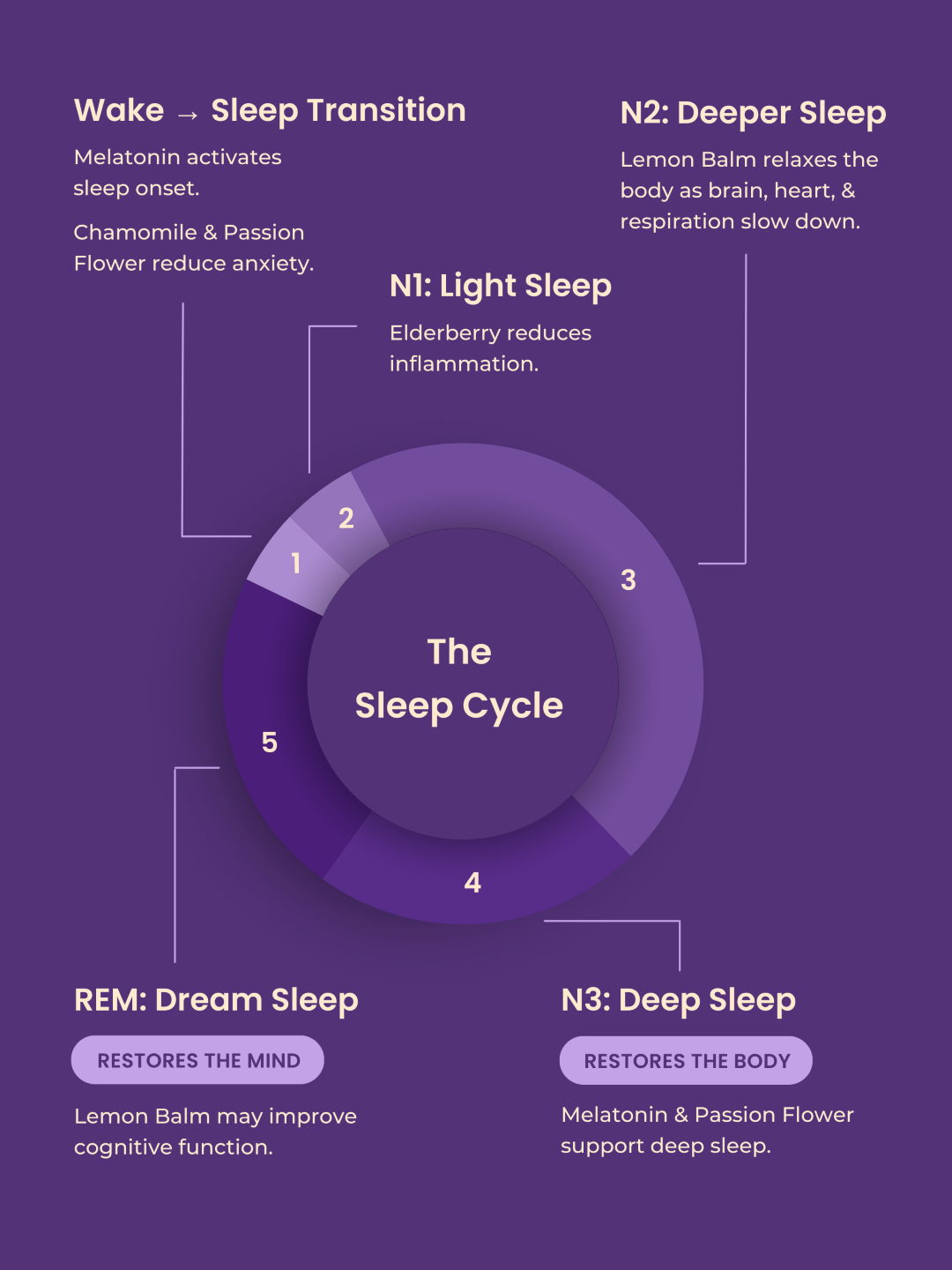 Sleep & Recharge was consciously curated to support each phase of your sleep cycle to help you fall asleep, stay asleep, and wake up feeling refreshed.*