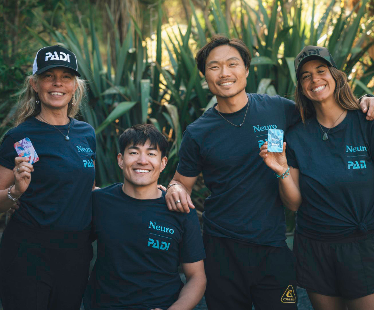 At 19, Ryan, Neuro's Co-Founder,  experienced a snowboarding accident  that left him paralyzed from the waist  down. As he was navigating his new norm,  and searching for new activities to help  him recover mentally and physically, Ryan  discovered scuba diving. Kent, who has  been there supporting Ryan agreed to join  him on a weeklong dive trip to become  PADIR certified divers. It was there at the  inception of Neuro was born.